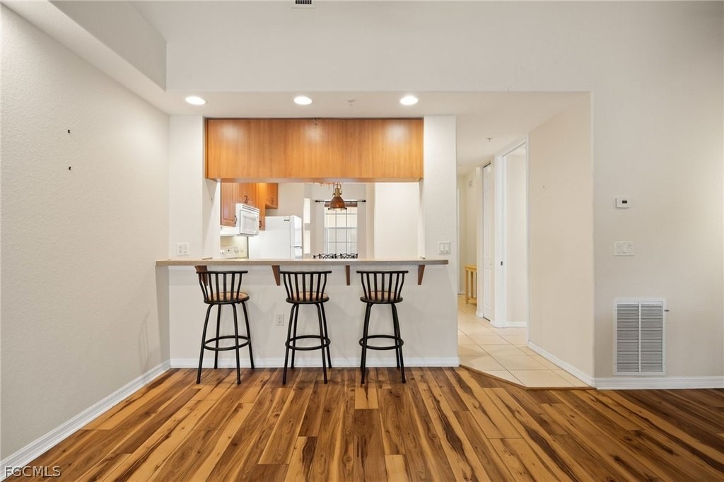 Step into this inviting 2-bedroom, 2-bathroom condo featuring a desirable split floor plan that offers comfort and privacy for both owners and guests. The spacious kitchen designed with functionality includes a cozy dinette, a breakfast bar, and plenty of storage, flowing seamlessly into the main living area. Enjoy the convenience of in-unit laundry and unwind on the screened balcony, perfect for morning coffee or evening relaxation. The primary en-suite provides a peaceful retreat with a walk-in closet, walk-in shower, and direct access to the lanai. A versatile flex room adds even more functionality-ideal for a home office, hobby space, or den. Located within a gated community, residents enjoy access to a heated pool, hot tub/spa, community room, billiards table, fitness center, and a scenic walking paths. Additional conveniences include a carport and a private storage closet, enhancing everyday ease. This well-designed home blends comfort, practicality, and great community amenities to build the lifestyle you've dreamed of-all at an affordable price. Welcome Home!